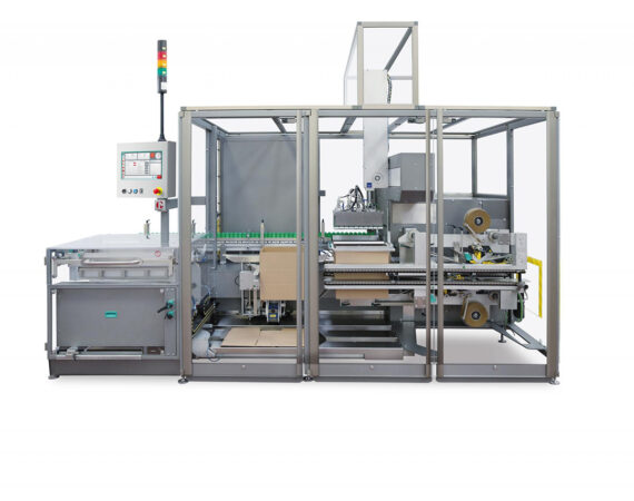 - The case is supplied into a vertical magazine, ergonomically positioned at the machine's front.
