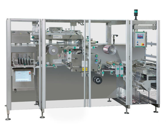 The MST200 and MST300 are automated machines designed for packaging solid products such as tablets, dragées, caplets, capsules, and effervescents in strips. These machines can operate independently or be integrated with cartoners, either in a straight line or at a 90-degree angle. They are engineered with a compact design to allow operators to easily monitor the entire production process.